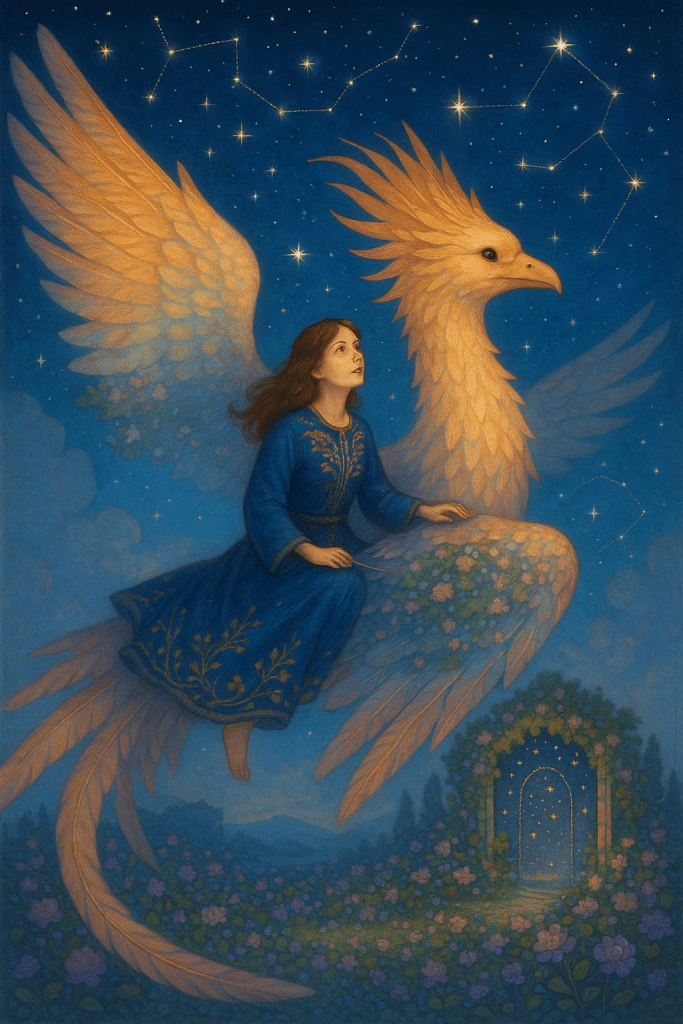 With trembling hands, Mira embroidered a garden into the sky, stitched wings to the mountains, and sewed a doorway into the stars. Her needle hummed with power she hadn’t known she held. And from the stitched stars came a dragon—not of fire and scales, but of feathers made from dawnlight and breath that rang like windchimes.